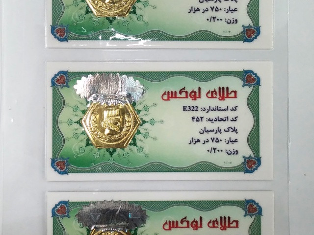 سکه های پارسیان (یا همان پلاک پارسیان) شامل قطعه طلایی با قالب مشخص و بسته بندی وکیوم است که در وزن های مختلف تولید می شود.