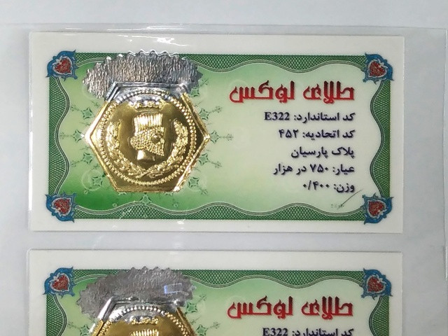 سکه های پارسیان (یا همان پلاک پارسیان) شامل قطعه طلایی با قالب مشخص و بسته بندی وکیوم است که در وزن های مختلف تولید می شود.