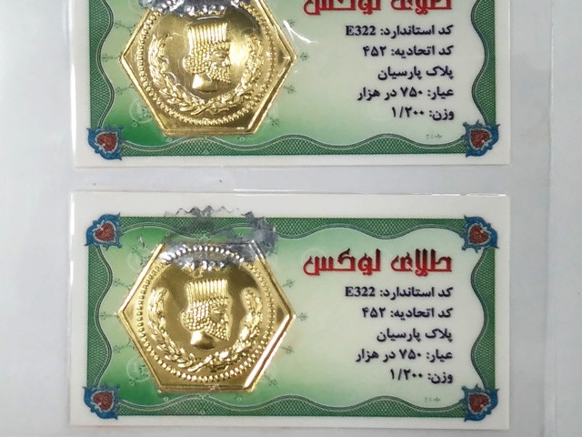 سکه های پارسیان (یا همان پلاک پارسیان) شامل قطعه طلایی با قالب مشخص و بسته بندی وکیوم است که در وزن های مختلف تولید می شود.