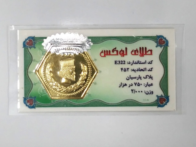 سکه های پارسیان (یا همان پلاک پارسیان) شامل قطعه طلایی با قالب مشخص و بسته بندی وکیوم است که در وزن های مختلف تولید می شود.