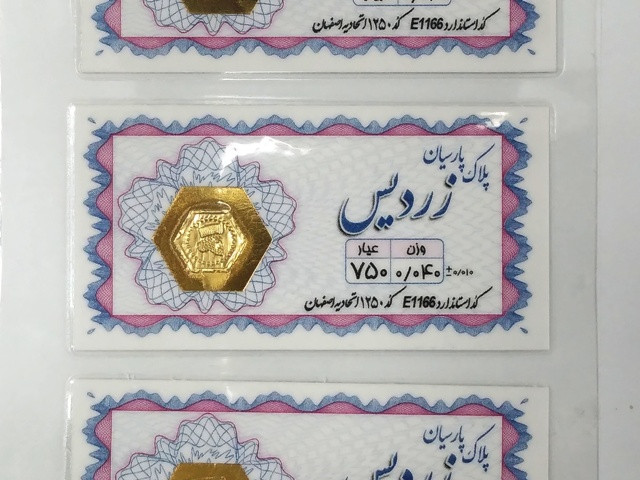 سکه های پارسیان (یا همان پلاک پارسیان) شامل قطعه طلایی با قالب مشخص و بسته بندی وکیوم است که در وزن های مختلف تولید می شود.